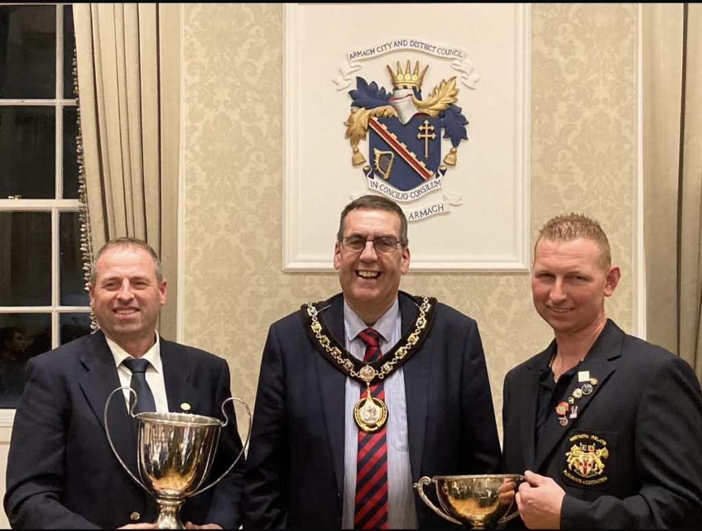 David Wright (Reversible Champion), Alderman Stephen Moutray and Andrew Gill (Conventional Champion)