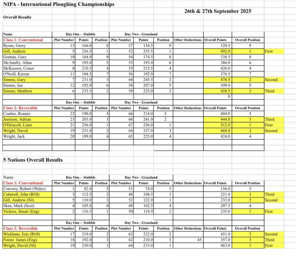 Congratulations to everyone who competed in this year’s championships – Held over two days this year’s match was held on grounds near Gilford kindly granted by Richard Gilpin, Albert Kinnear, Jonathan Richardson, Brian Lilliburn and Gilfresh Produce.