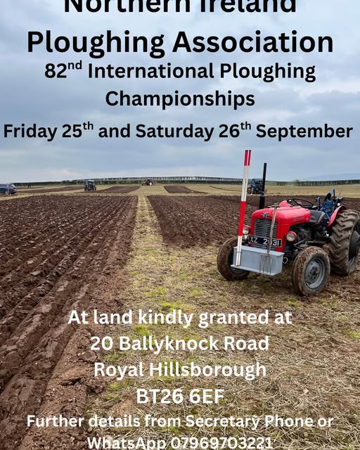 The 82nd Northern Ireland International Ploughing Championships will take place on Friday the 25th and Saturday the 26th September 2026.